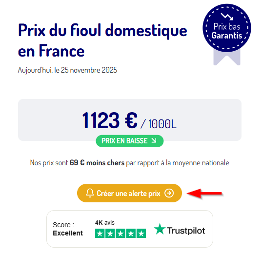 Le prix du fioul est volatil : il peut varier fortement d’une semaine à l’autre selon les événements internationaux ou les conditions du marché. Suivre quotidiennement son évolution vous permet d’acheter au meilleur moment et de réaliser des économies significatives. Pour cela, notre page dédiée au prix du fioul vous informe en temps réel des tarifs nationaux et régionaux.